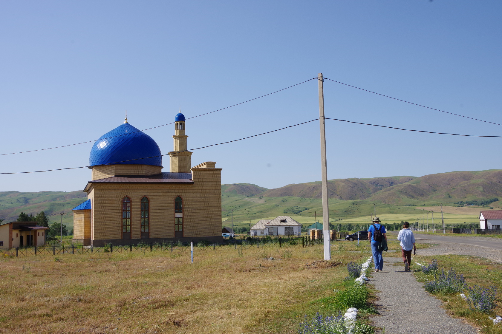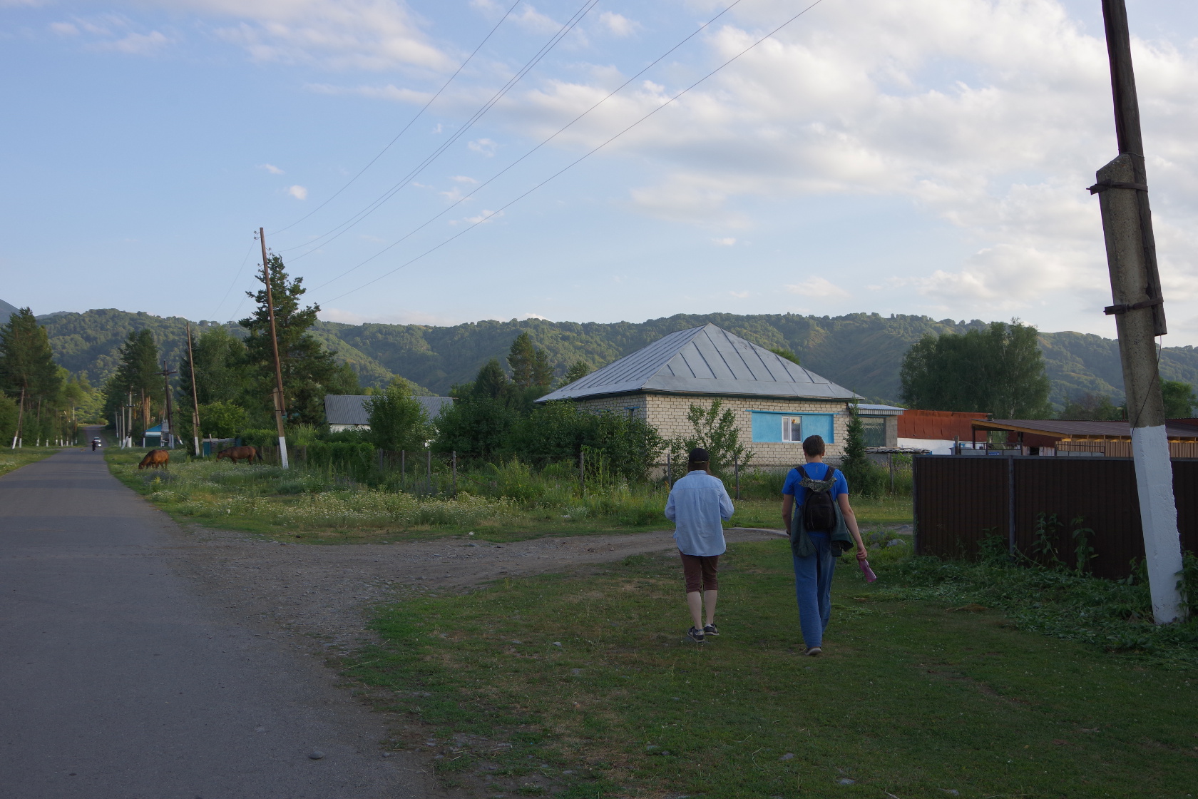 Nachmittags spazierten wir mit Yulduz an den Fluss Lepsa. Inzwischen war es schon wieder warm geworden und hier war es etwas kühler. Wir ließen Steine flippen; Reinhard war der Profi, aber auch Yulduz schaffte ein paar sehr gute, nur ich stellte mich etwas ungeschickt an. Das Wasser war recht trüb und eiskalt, da es von einem Gletscher gespeist wird. Wir wateten ein bisschen durch das eiskalte Wasser, unterhielten uns viel und genossen einfach die Zeit. Beim Kontest “Stein treffen” gewann allerdings ich!